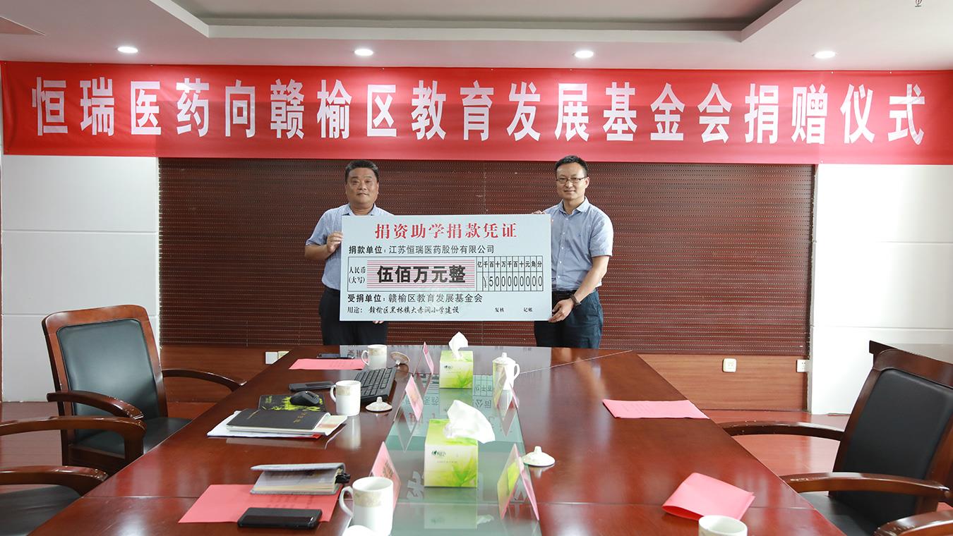 亚美国际官方医药向连云港市灌云县捐赠助医助学基金300万元。